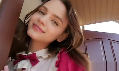 Sexy Japanese Schoolgirl Fucked on White Bed