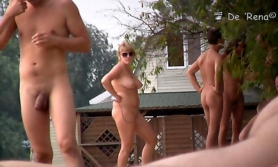 Busty Blonde Teen Cumming on Beach with Horny Nudes
