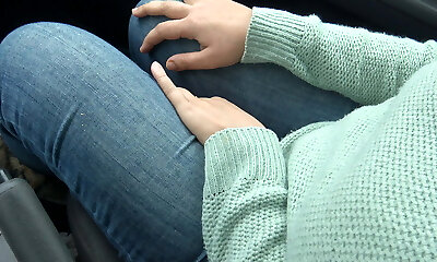 Hot Girl Pisses in Jeans and Soaks Car Seat