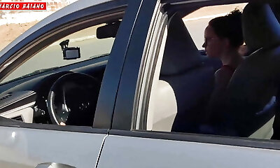 Fucking Machine: Busty Girl Gives Blowjob in Moving Vehicle