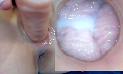 Skinny slut begs for deep creampie close-up