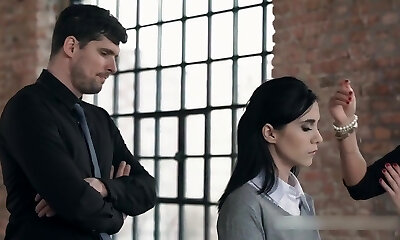 Suited Stud Fucks Brunette in Class
