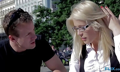 Blonde Glasses Babe Gets Creampie