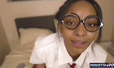Nerdy Girl Sucks Hard with Glasses On