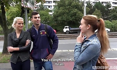 Couple Swaps With Strangers On Striped Couch