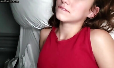 Amateur POV Sex Scene with Horny Hairy Teen Cumming on Small Tits