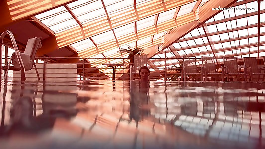 Chesty and wonderful new redhead stunner in the pool undresses underwater
