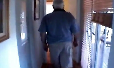 Grandpa's Kitchen Cock-Fest: Morning Wank and Cum on Webcam