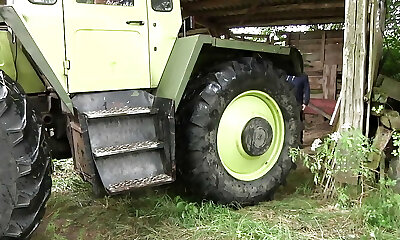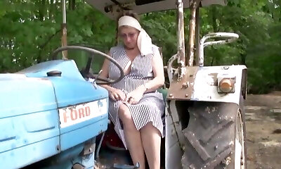 Horny Granny Gets Banged by Her Farmhand on the Big Green Tractor!