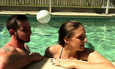 Outdoor pool fuck with horny housewife