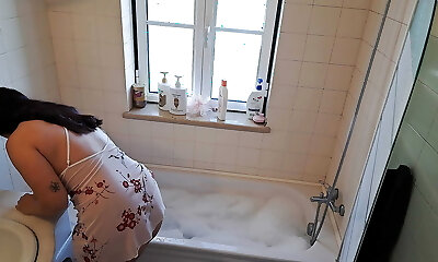 Sexy chubby showers and teases stepdad.