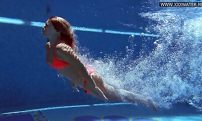 Underwater pool pounding with skinny MILF