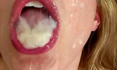 Sloppy Cum in Mouth Blowjob: Hot Older Woman Gets Dick Down Her Throat!
