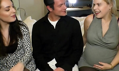 Fierce Blonde Bitches Take Turns Sucking His Biggest Dick